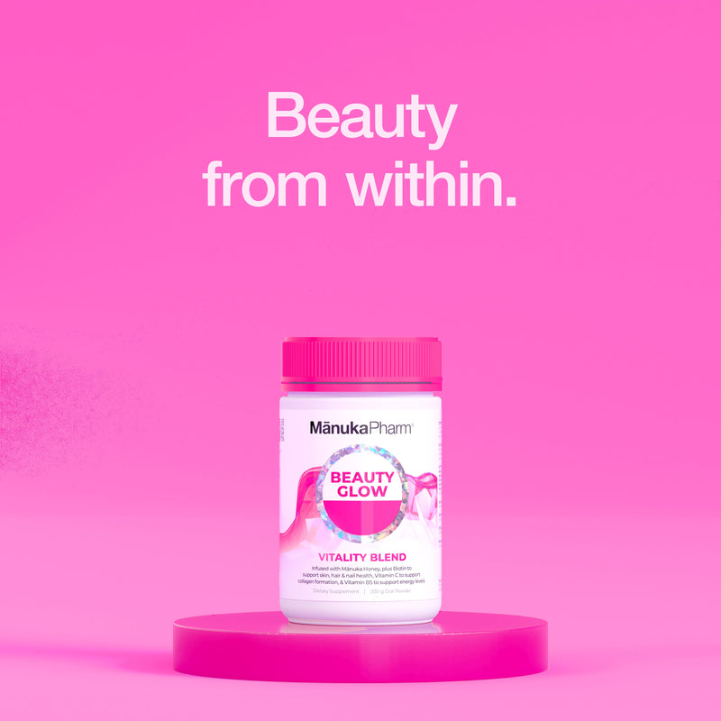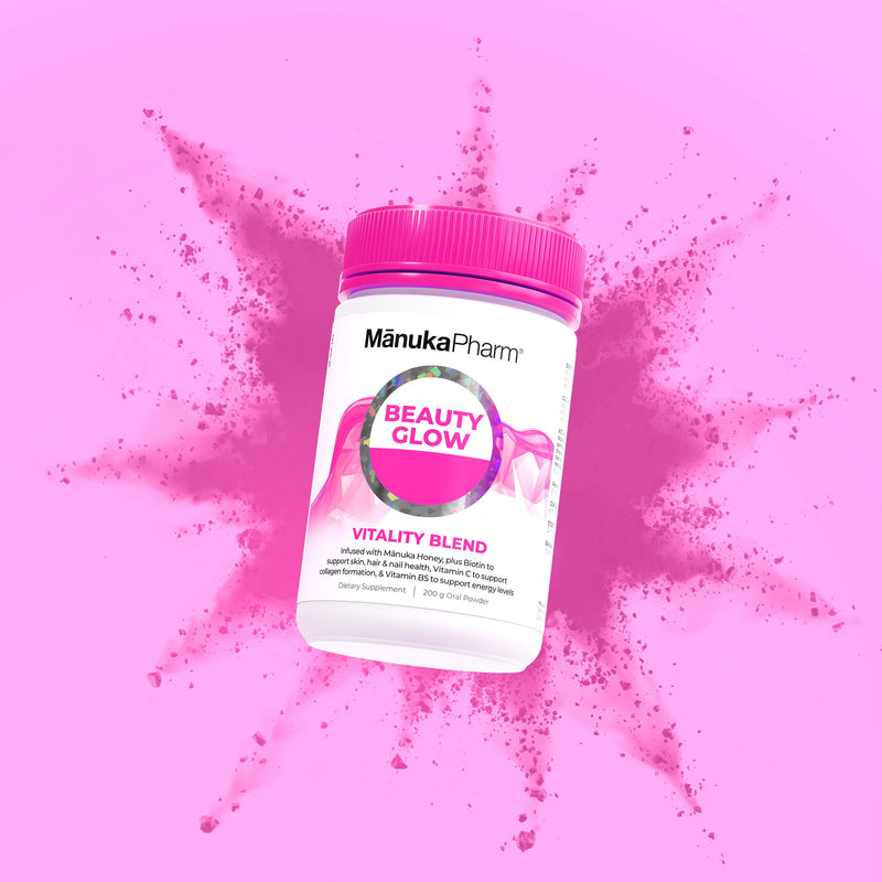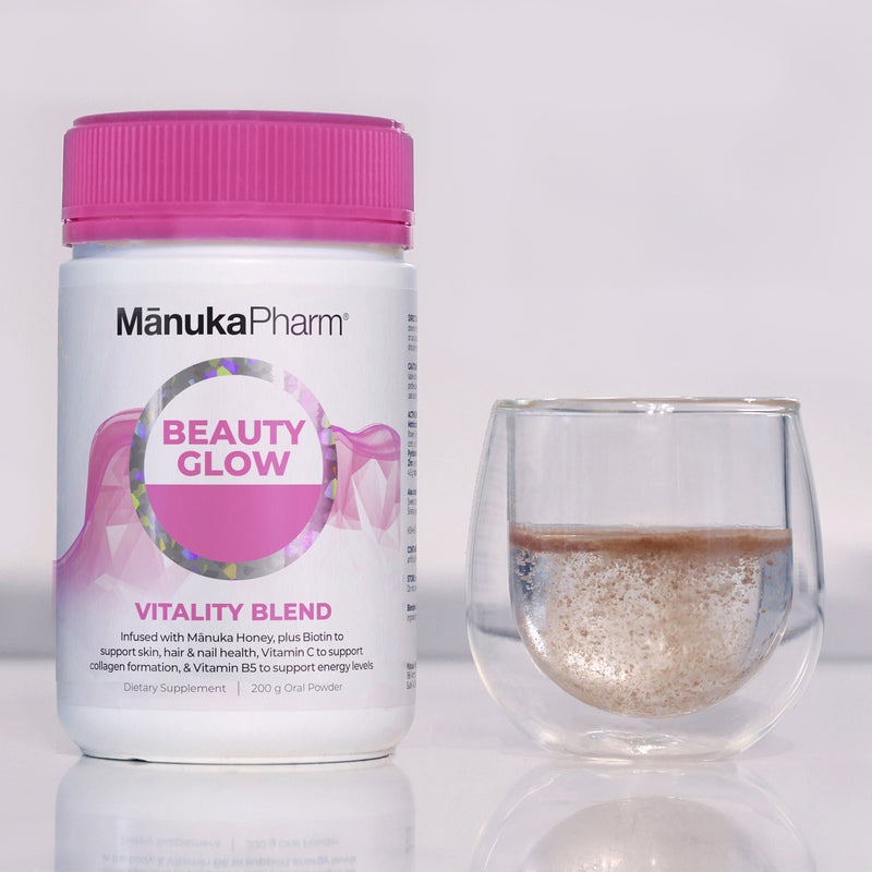 A synergistic blend of beauty-loving ingredients. This super-powder vitality blend contains Biotin, Vitamin C and Vitamin E, combined with Silica and Hyaluronic acid. Enriched with the antioxidant goodness of Beetroot and infused with our New Zealand Manuka Honey powder.